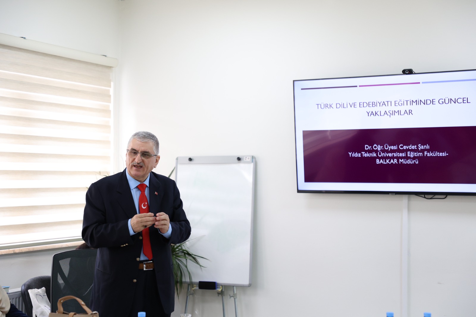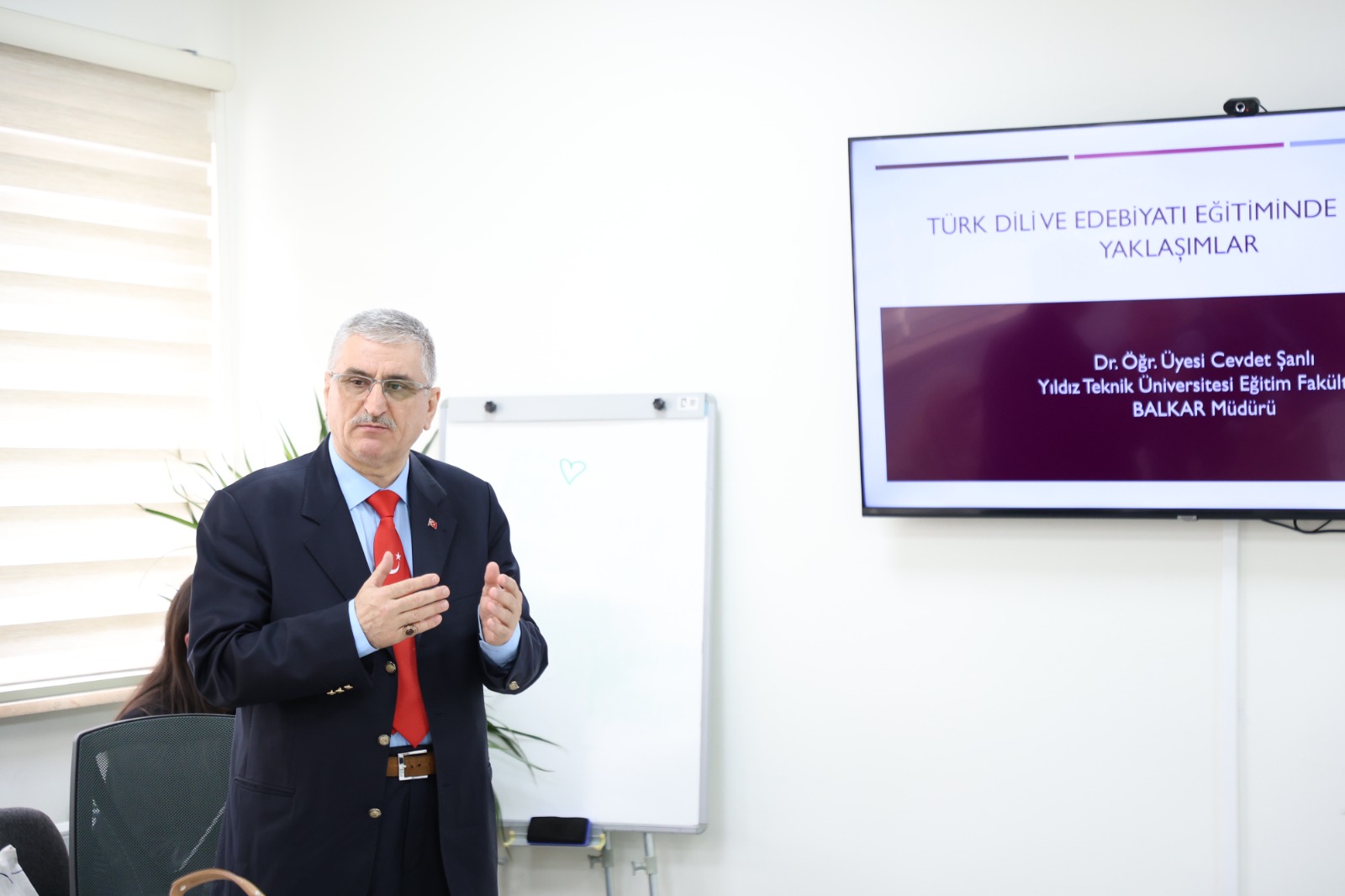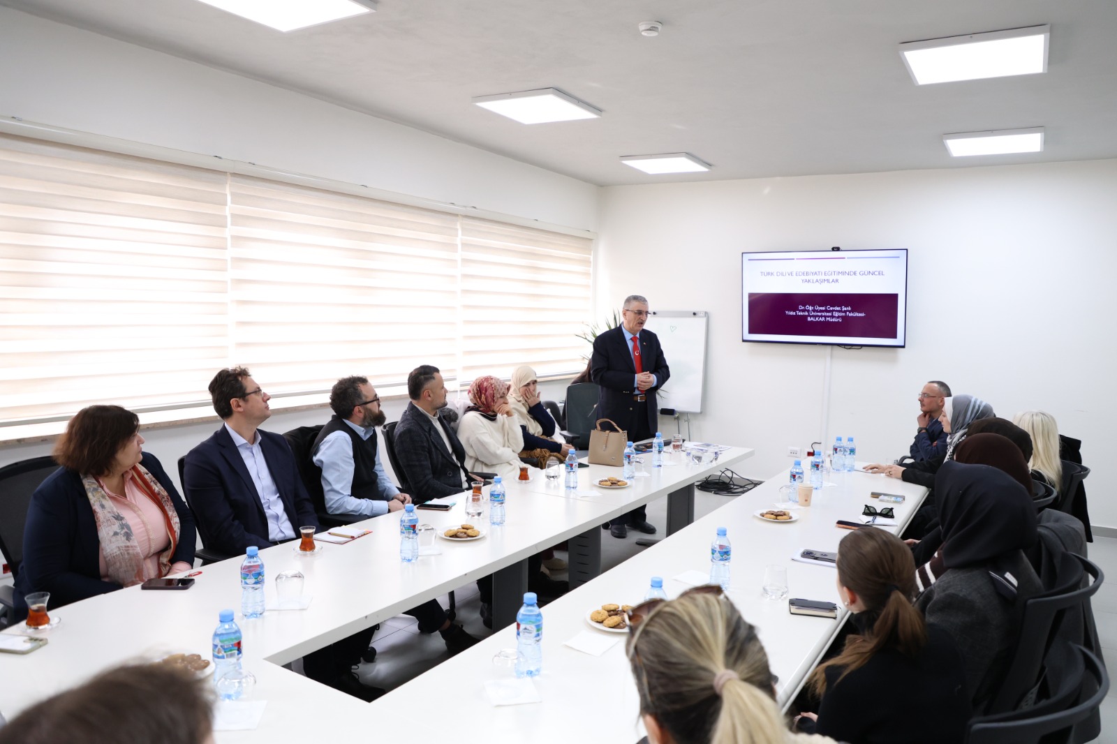 New Methods in Turkish Language Teaching Discussed In his presentation, Dr. Cevdet Şanlı shared comprehensive information on contemporary methods used in teaching Turkish language and literature, the pedagogical needs encountered, and the effective use of educational materials. During the seminar, which was followed with great interest by the participants, evaluations were made regarding the importance of cultural context in language teaching and how modern approaches can be applied in the classroom.