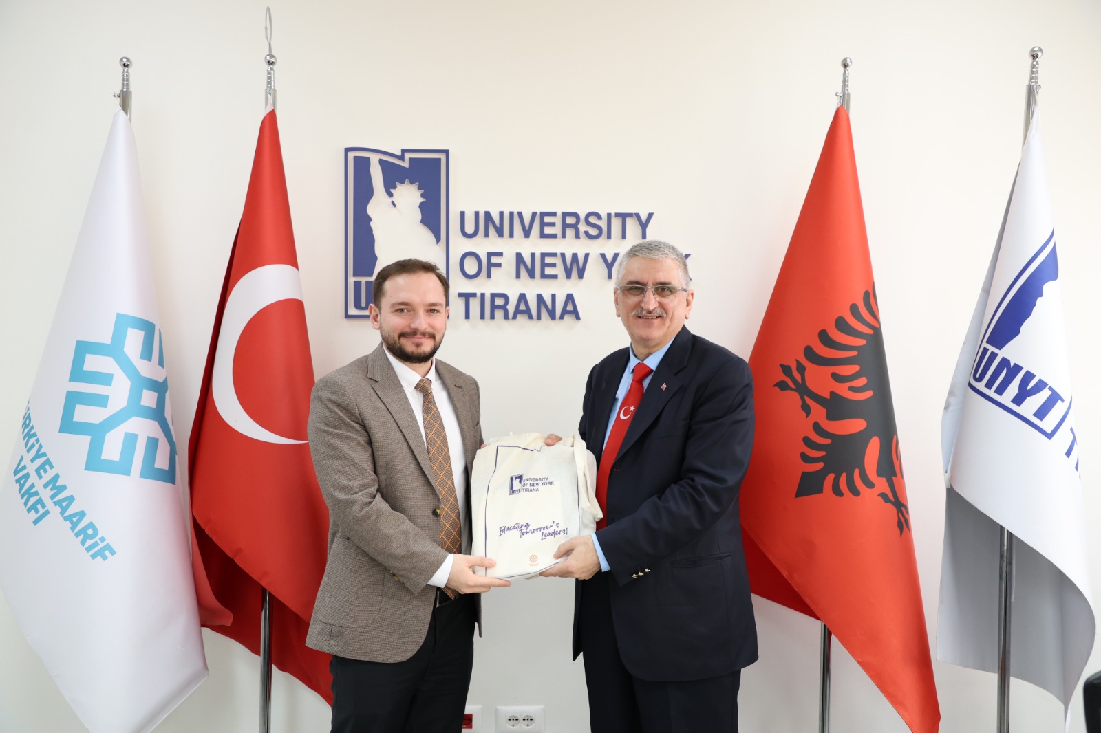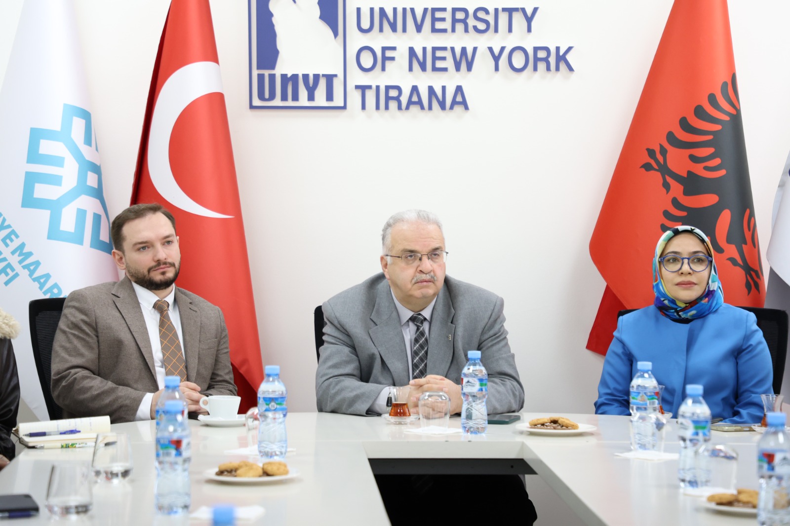 The program concluded with a souvenir photo taken by the participants and the university delegation, accompanied by Turkish and Albanian flags.